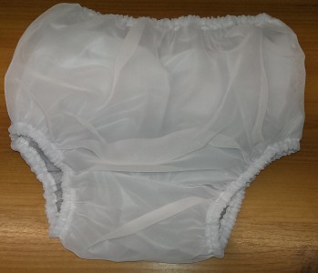 Chiffon covered clear frilly waterproof pants/rubbers